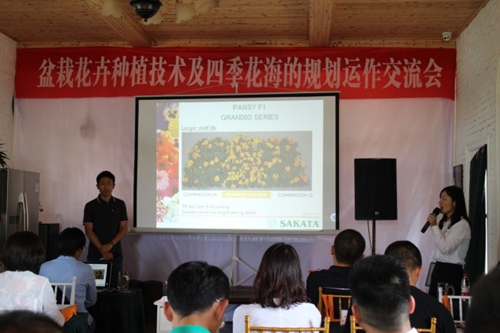 坂田公司此次主要向在座的客戶宣講今年花卉品種的新增花色和改良品種的優(yōu)勢(shì)。另外,也向大家隆重介紹了坂田公司的無(wú)性系花卉桑蓓斯和現(xiàn)在流行的花?;ㄧR應(yīng)用。在此次宣講中,不僅讓更多的花卉公司和花農(nóng)了解坂田的產(chǎn)品,更與此次的主辦方浙江虹越和德陽(yáng)明大取得了進(jìn)一步合作,為以后新品種的推廣打下良好的基礎(chǔ)。