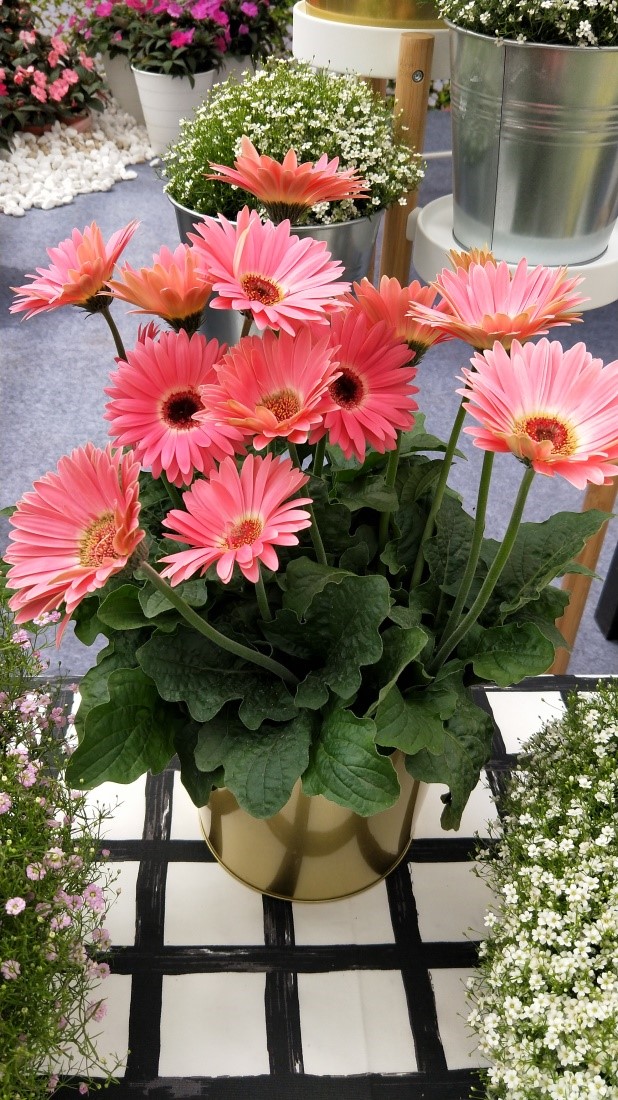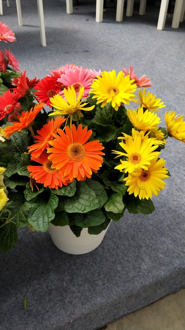 非洲菊“摩天輪”超大的花卉、熱烈的色彩,花莖粗壯,開花力驚人,可有多朵花同時(shí)開放,且花苞不斷;無論作為盆花銷售還是作為花境的應(yīng)用,都是一個(gè)十分出彩的品種。
