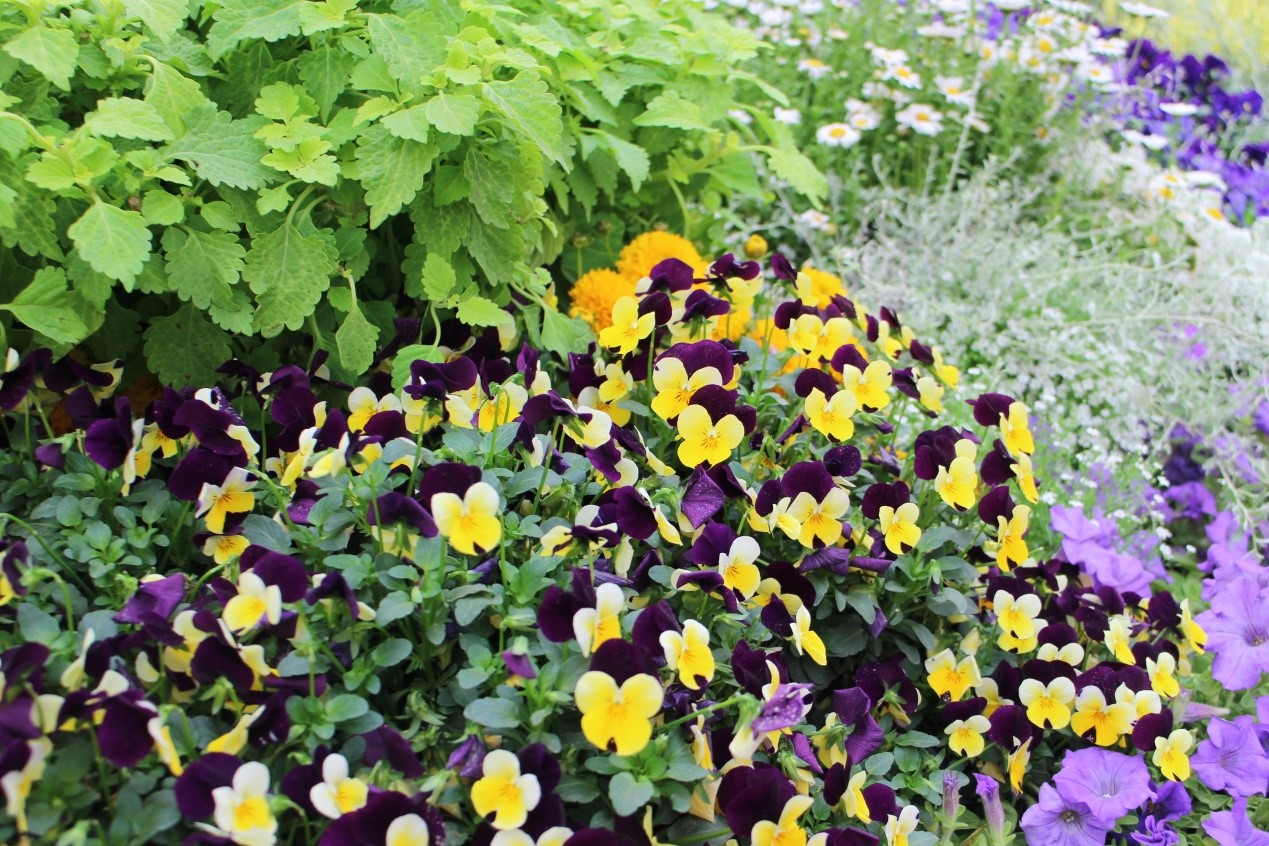 角堇“鋼琴家”明亮歡快的色彩,就像蝴蝶一樣在花境中展現(xiàn)它曼妙的舞姿。