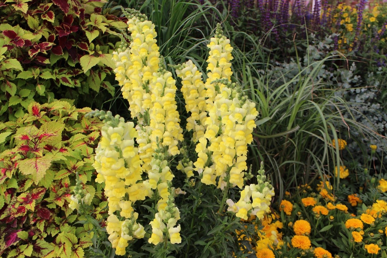 金魚草“早生詩(shī)韻”,就如一支畫筆,在這景色中,勾勒了一抹淡雅的黃色。恰到好處的高度,強(qiáng)壯的枝條,都能讓它出色地完成花境的組成。