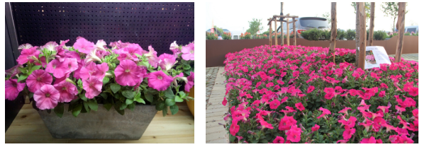 本次虹越的花卉展示會在地栽上大面積地應用了坂田公司今年推出的矮牽牛新品種“雨林”系列?!坝炅帧毕盗械膬?yōu)勢在于耐雨水和耐高溫,在炎熱多雨的夏季,其花朵能在雨后迅速恢復,展現(xiàn)出旺盛的生命力和對環(huán)境適應力, “雨林”優(yōu)越的表現(xiàn)成為本次展會的新寵。