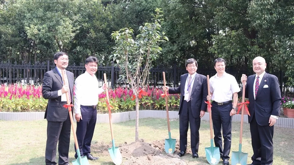 為了紀念二十周年這一難忘的時刻,坂田宏、許超震、片山和之、陸定峰、樓惠寶等共同在花壇栽下了一棵櫻花樹以作紀念。許超震說等到下一個十年,這棵樹一定長得很大,就像坂田中國一樣發(fā)展壯大。