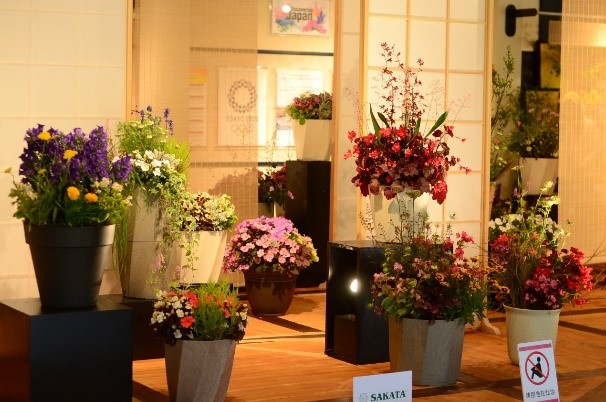 日本國(guó)家館日當(dāng)天日本方大使官員、坂田社長(zhǎng)坂田宏先生、坂田種苗(蘇州)有限公司總經(jīng)理樓惠寶先生、副總經(jīng)理松浦雅仁先生一并出席儀式并同與會(huì)來賓介紹作品及重點(diǎn)品種,并得到了廣泛好評(píng)。