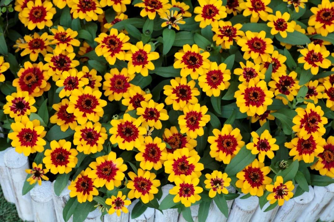 最后我們來(lái)回顧下坂田種苗株式會(huì)社獲得2021年AAS金獎(jiǎng)的另一個(gè)品種——豐花百日草“豐盛 紅黃雙色漸變”,它是繼櫻桃雙色漸變后,“豐盛”系列第二個(gè)雙色漸變品種。該花色花量大,株型飽滿,是理想的山丘狀株型。