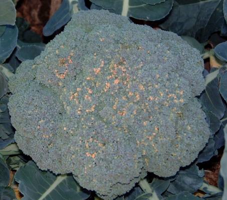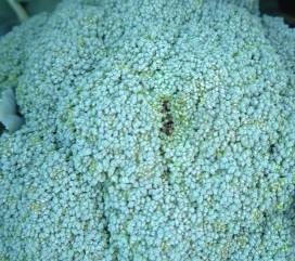 植株沒有足夠的能量促使所有的花粒保持綠色,從而導(dǎo)致花球頂端的花粒死掉變黃。高溫、根系損傷以及缺肥都會(huì)導(dǎo)致花粒變成棕黃色。