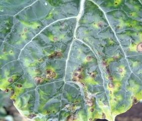 癥狀:“V”型病斑發(fā)生在葉片邊緣,病斑周圍變成黃色或者黑色。