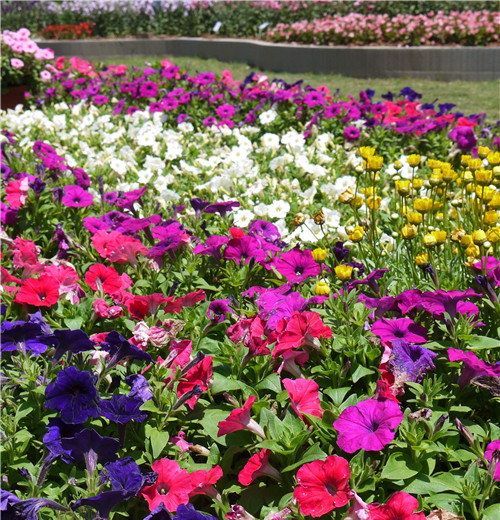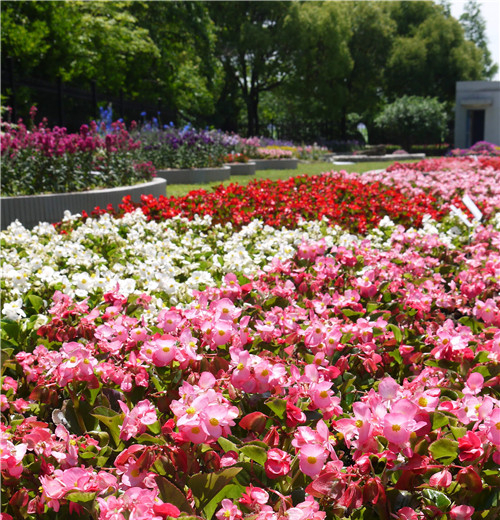 花壇應(yīng)用著重展示了矮牽牛“雨林”系列、四季海棠“神曲”、“大使”、“議員”系列以及石竹“鉆石”系列。