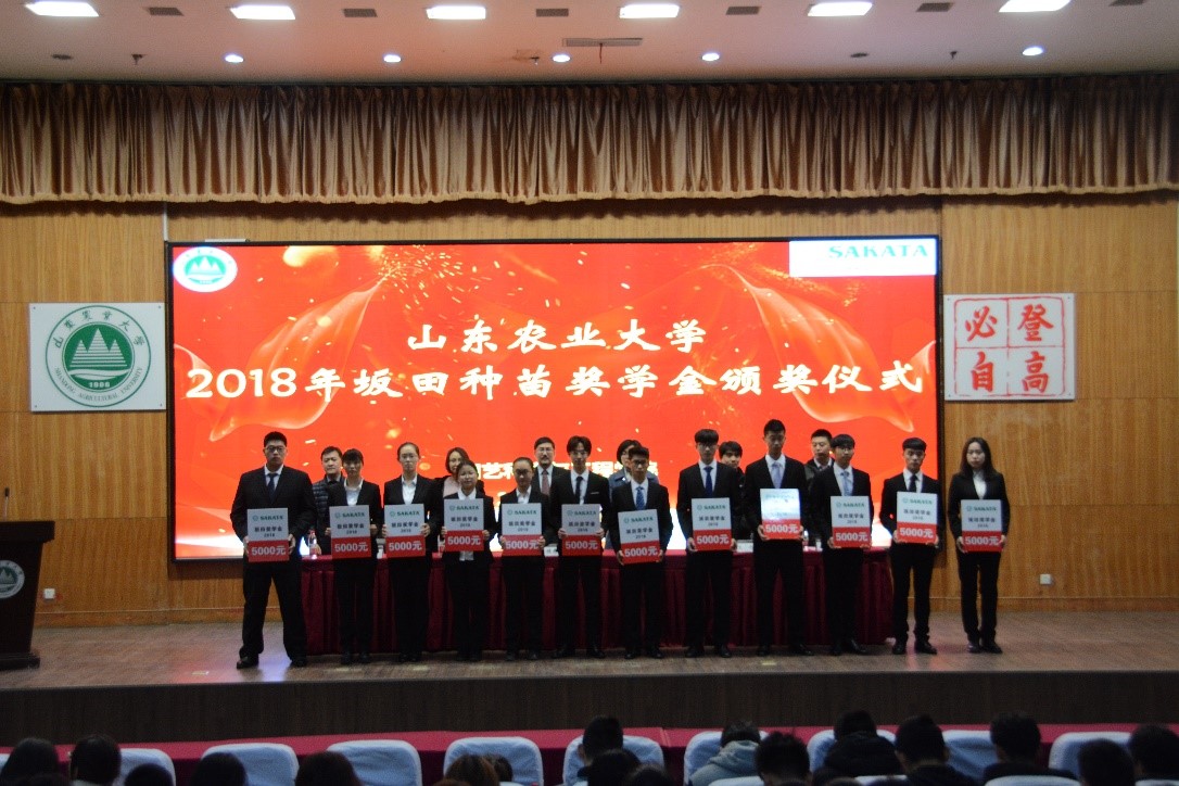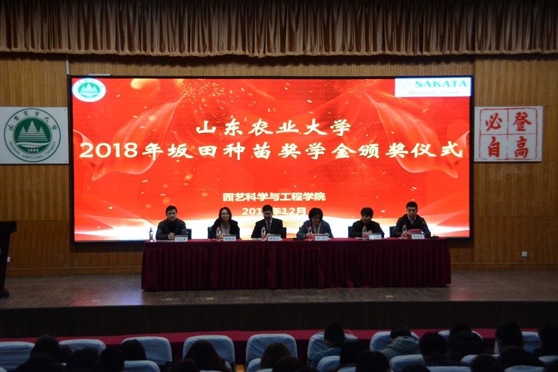 2018年12月5日下午,在山東農(nóng)業(yè)大學(xué)南校區(qū)舉行了坂田種苗獎(jiǎng)學(xué)金頒獎(jiǎng)儀式。出席儀式的有山東農(nóng)業(yè)大學(xué)園藝學(xué)院黨委書記張安濤、農(nóng)學(xué)院黨委書記王平、植保學(xué)院書記兼副院長(zhǎng)劉志勇、坂田種苗(蘇州)有限公司副董事長(zhǎng)兼總經(jīng)理樓惠寶。園藝學(xué)院、農(nóng)學(xué)院、植保學(xué)院獲得2018年度“坂田種苗獎(jiǎng)學(xué)金”的12位同學(xué)參加了頒獎(jiǎng)儀式。頒獎(jiǎng)儀式由園藝學(xué)院黨委書記張安濤主持進(jìn)行。